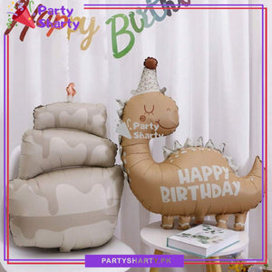 Matte Cream HBD Dinosaur Shaped Foil Balloon for Dinosaur / Dragon Theme Party Decoration