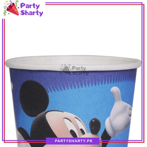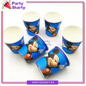 - Let your next celebration take a flight of fancy with these disposable paper cups! Sturdy paper cups are perfect for serving snacks and hors d'oeuvres. Pair with other Mickey Mouse theme accessories for a coordinated theme.