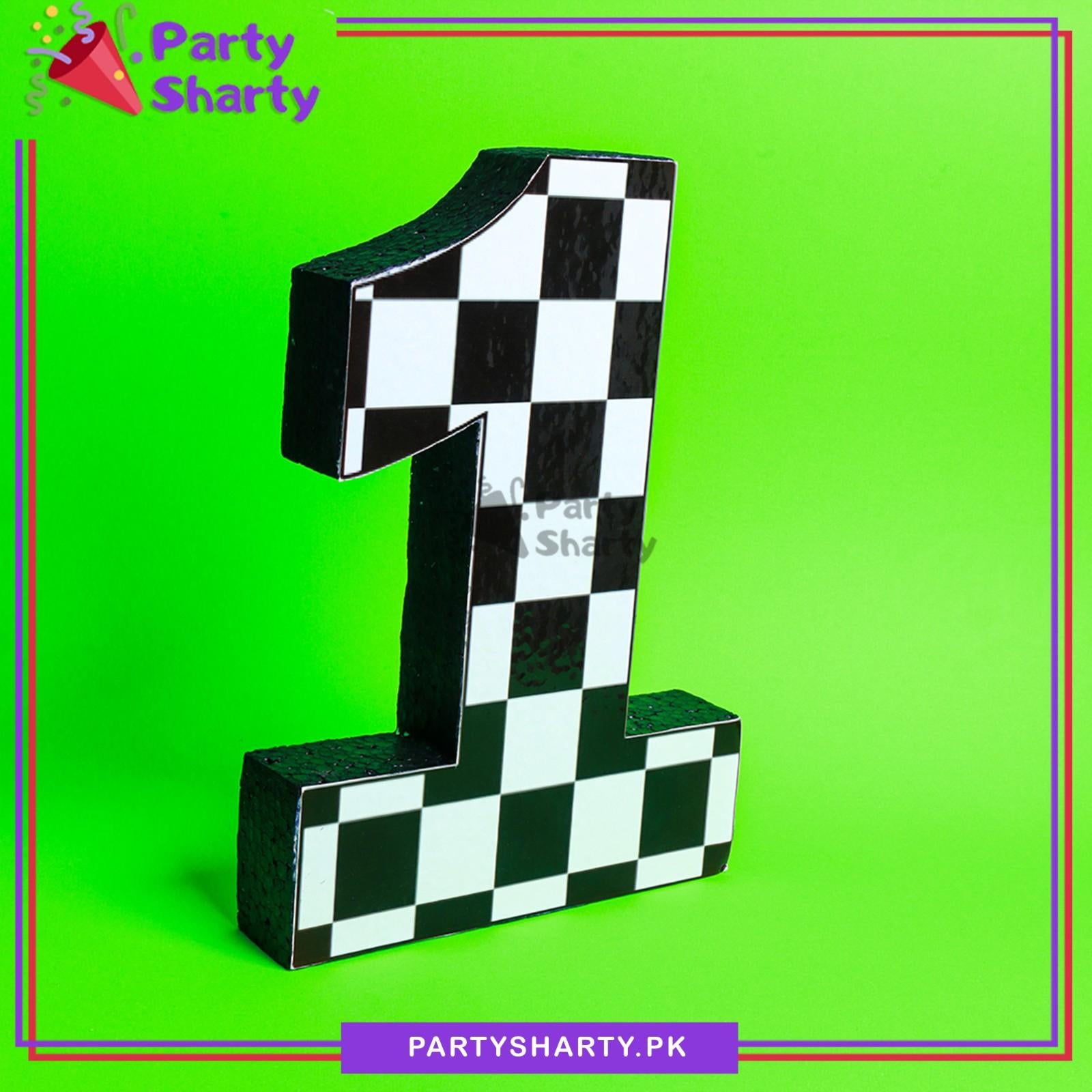 Numeric 1 Checker Design Thermocol Standee For Racing Cars Theme Based First Birthday Decoration