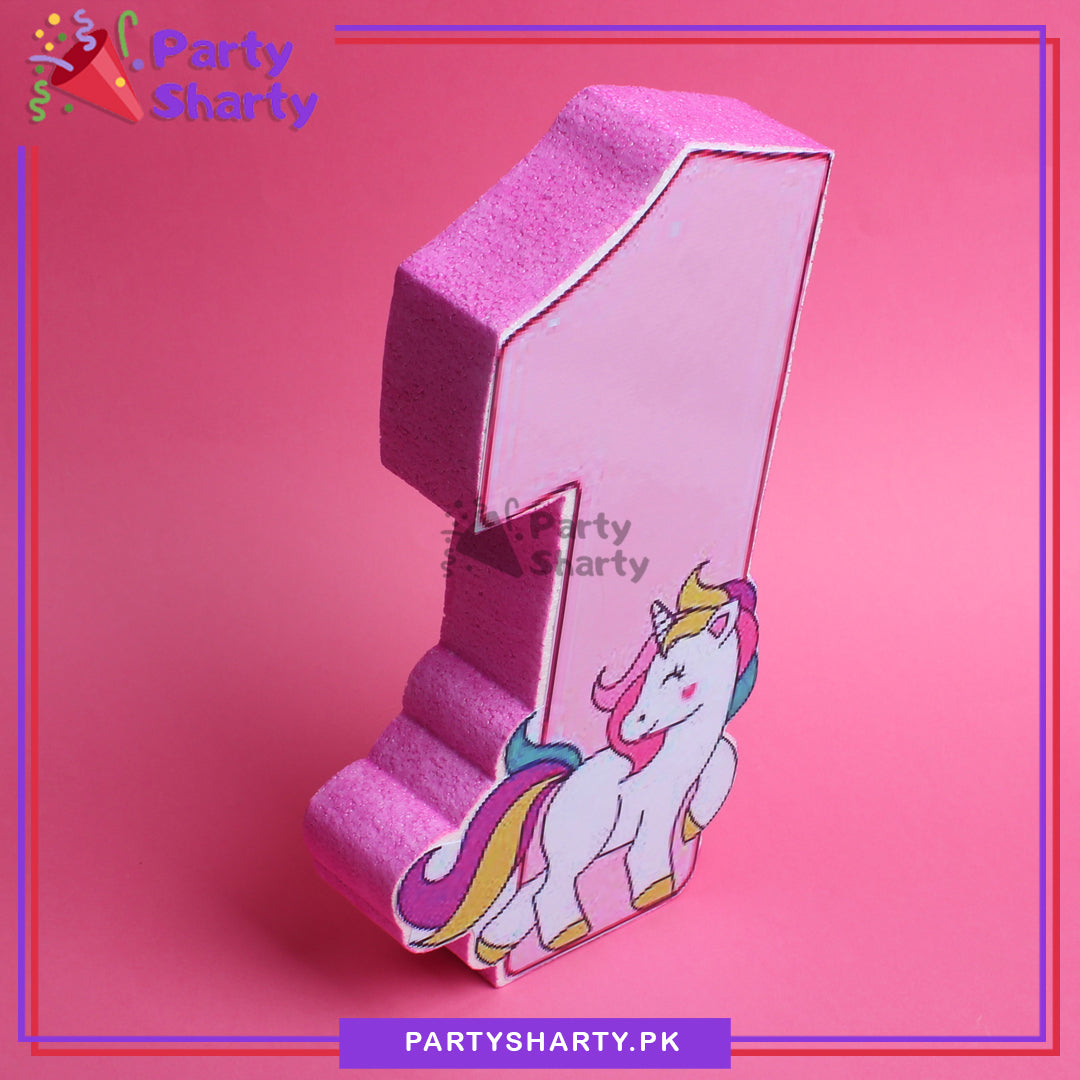 Numeric 1 Thermocol Standee For Unicorn Theme Based First Birthday Celebration and Party Decoration