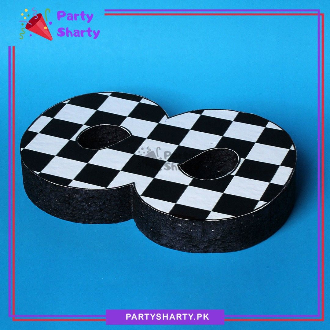 Numeric 8 Checker Design Thermocol Standee For Racing Cars Theme Based Eight Birthday Decoration