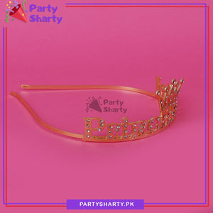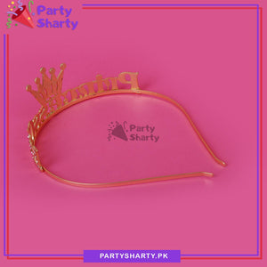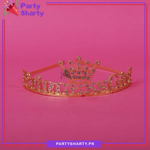 Pink Diamante Princess Girl Golden Metal Tiara For Birthday Party Event and Celebration