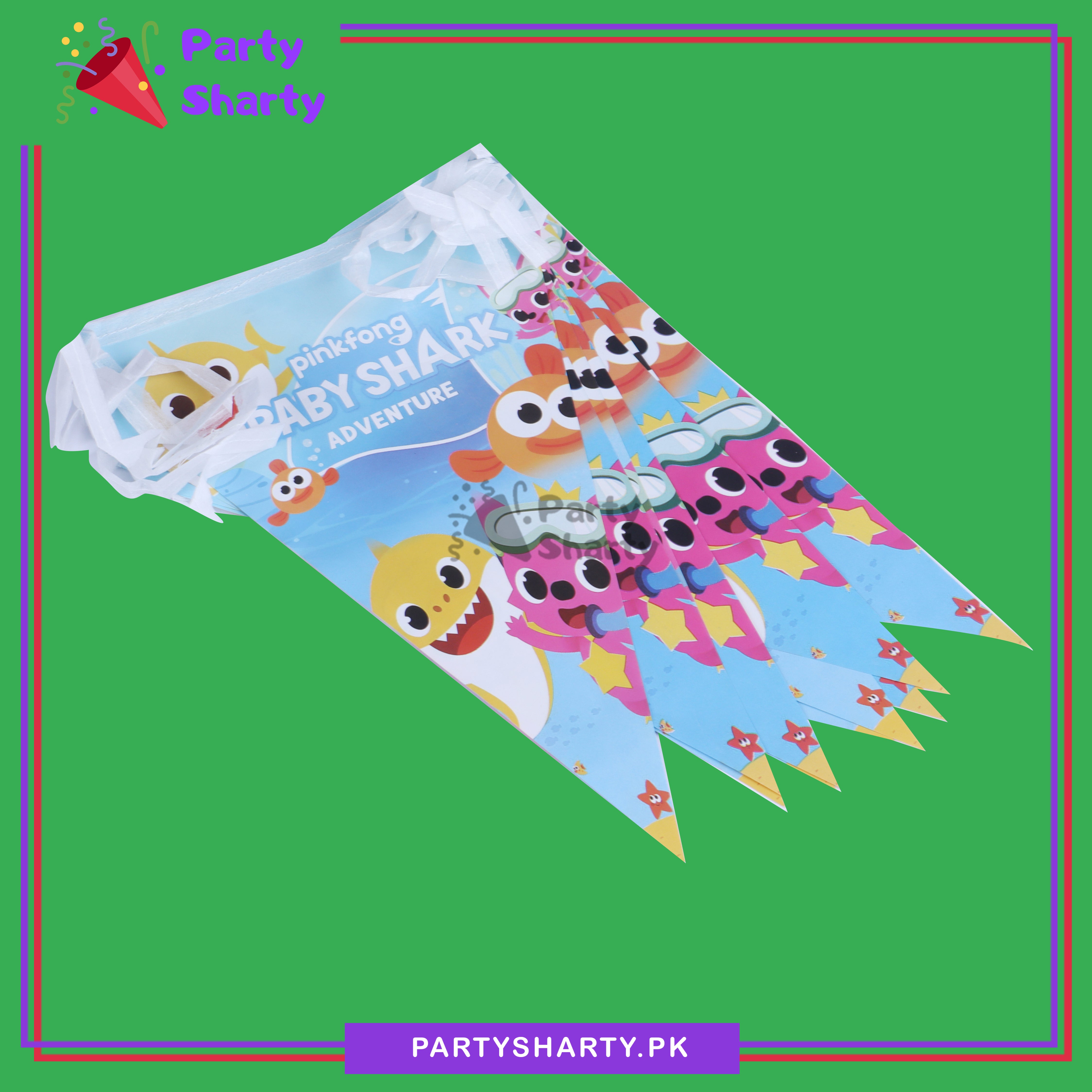 Pink Fong Baby shark Party Flags Pack of 10 For Baby shark Birthday Theme Decoration