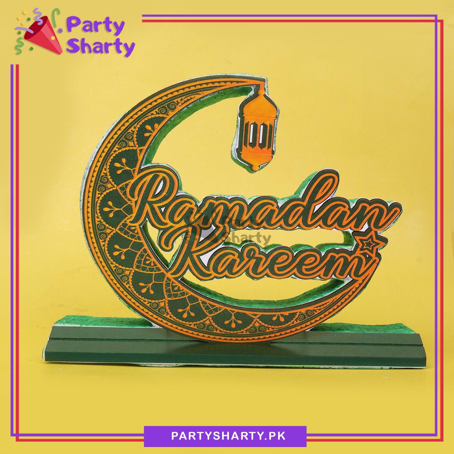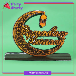 Ramadan Kareem Crescent Moon Shaped Thermocol Standee For Ramadan Mubarak Decoration and Celebrations