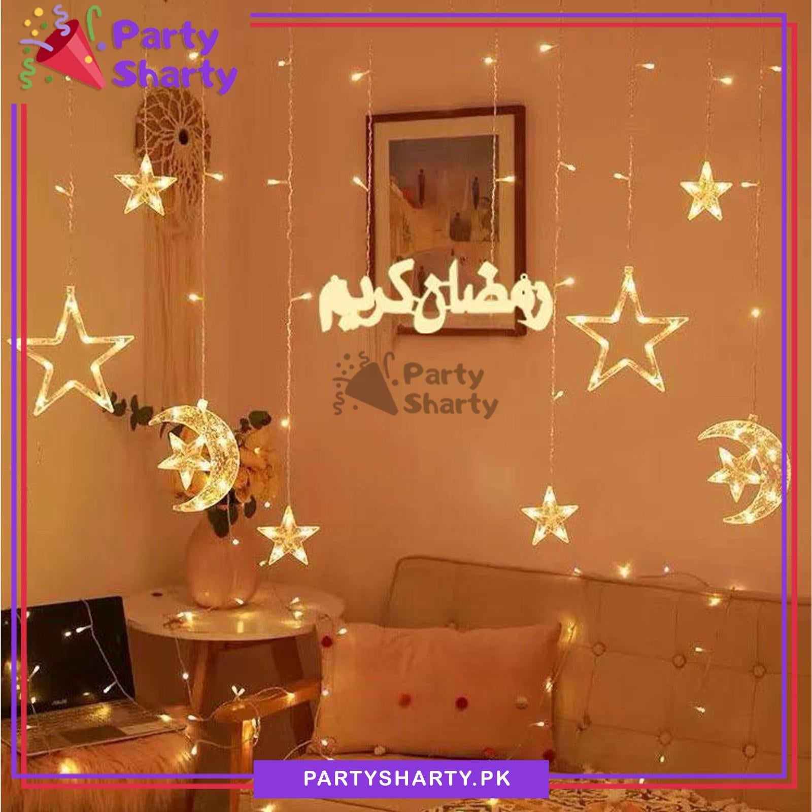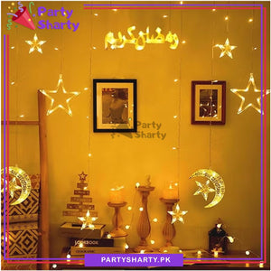 Ramadan Kareem Crescent Moon With Stars LED Curtain Fairy Lights For Decoration