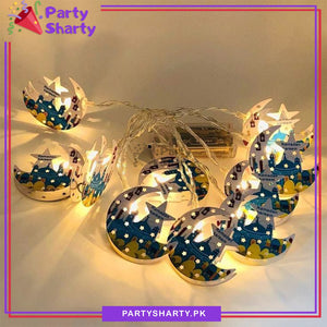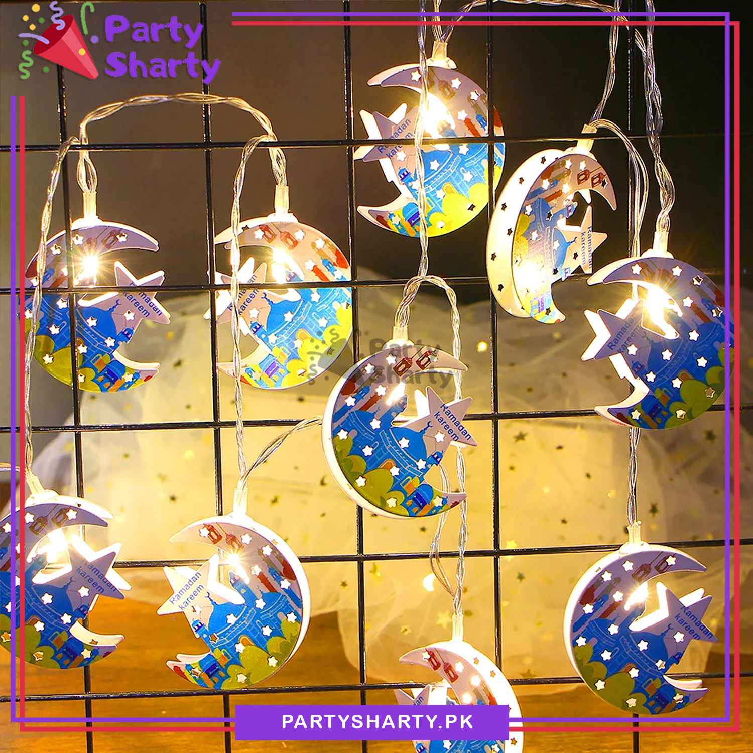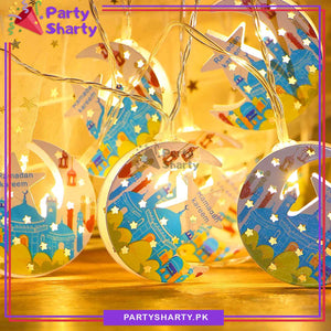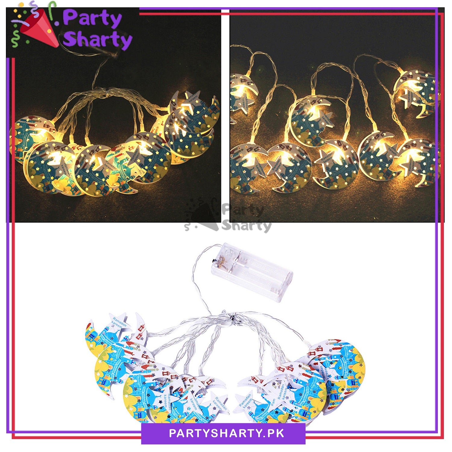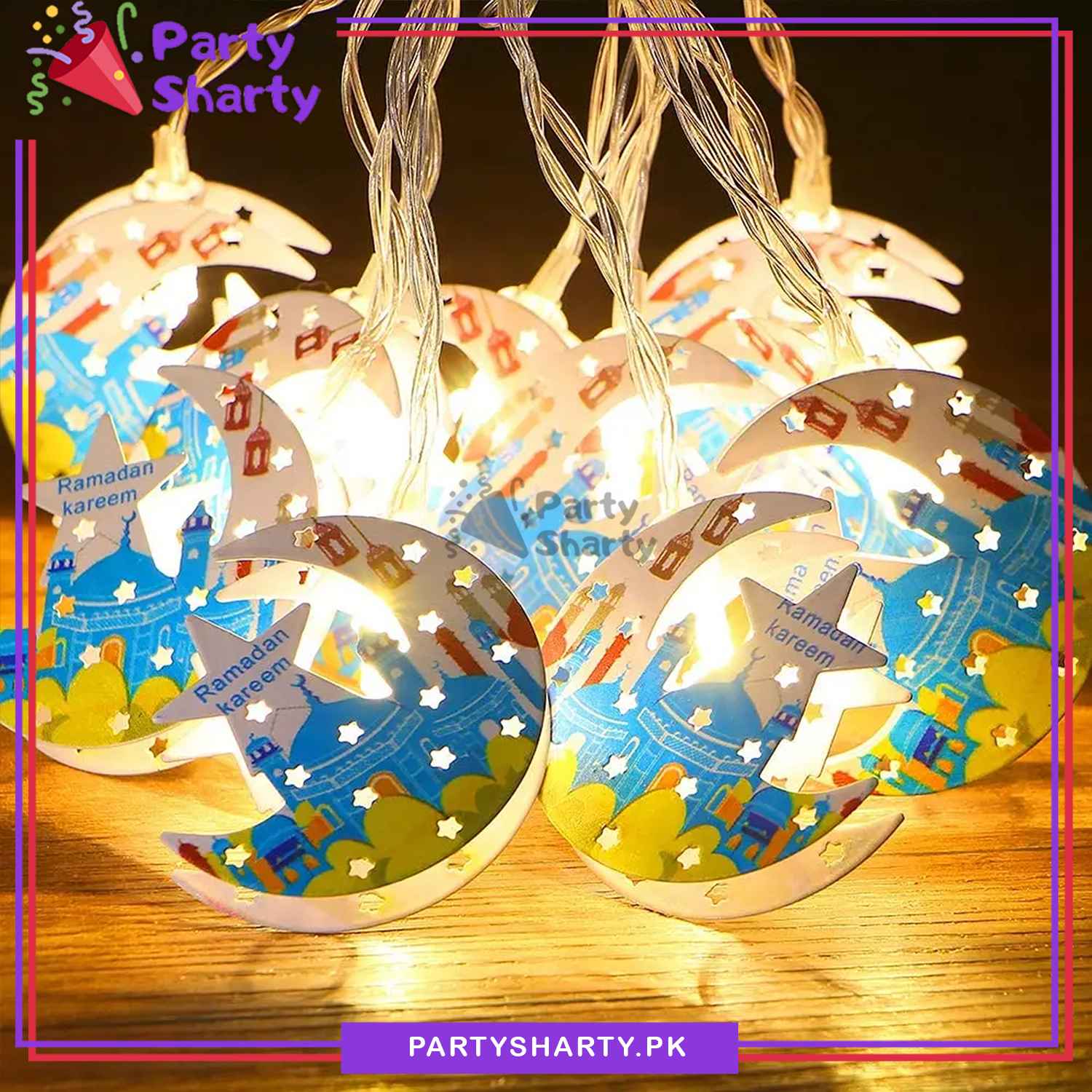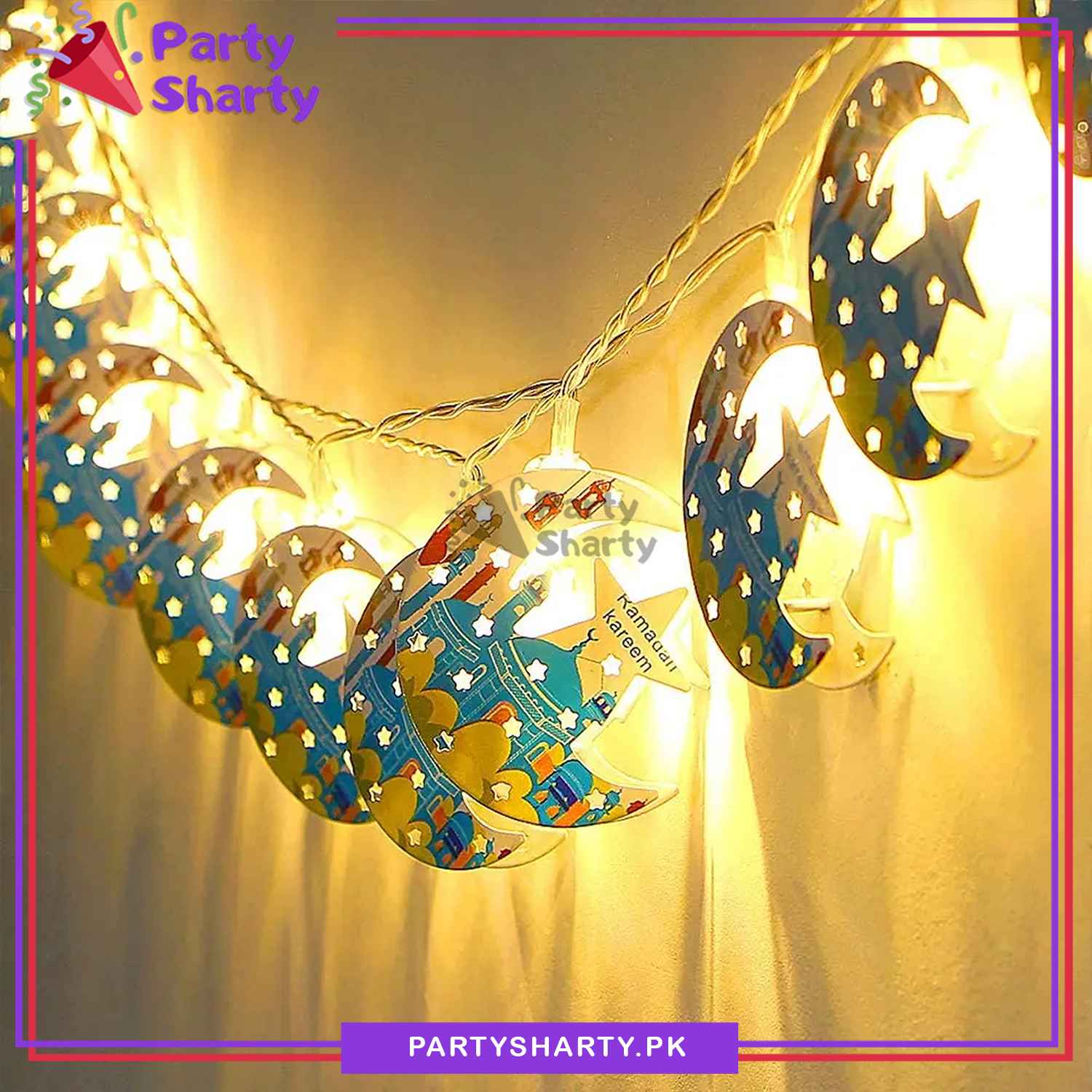Ramadan Kareem Printed Crescent With Star Shaped Led Metal String Light For Ramadan Decoration And Celebration