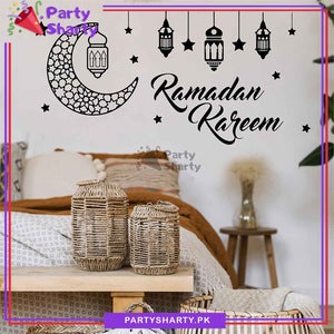 Ramadan Kareem Wall Vinyl Stickers, Hollow Moon Star Lantern Wall Sticker For Ramadan Kareem Wall Decoration