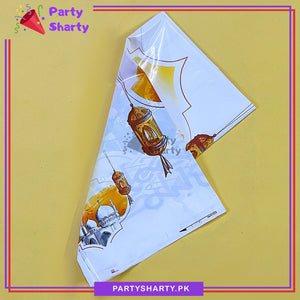 Ramadan Mubarak White & Golden Theme Plastic Table Cover for Ramadan Decoration