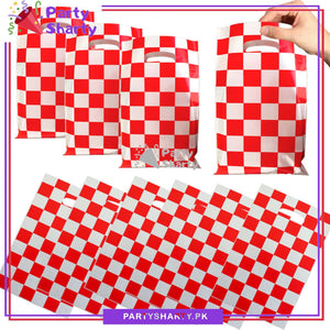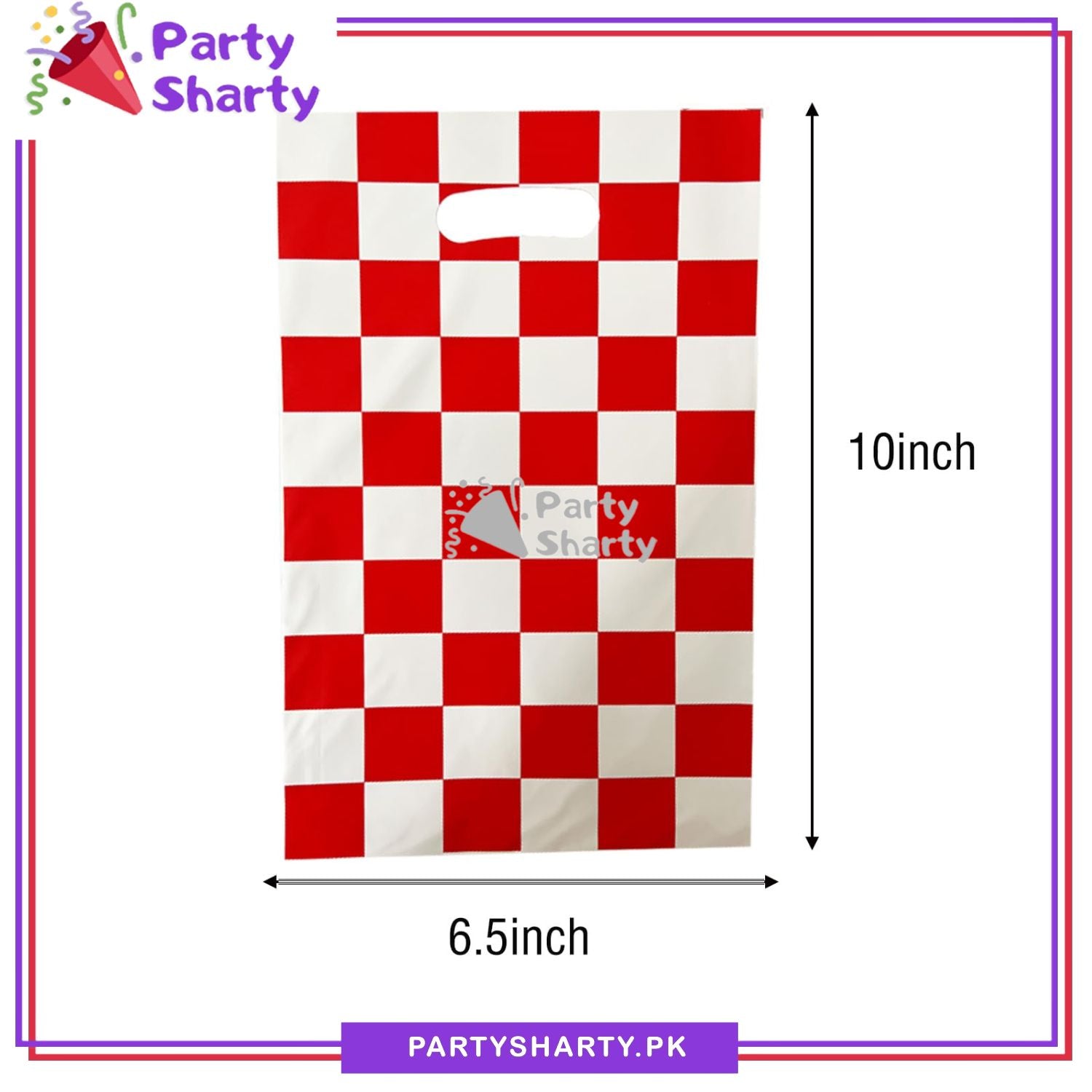 Red Checker Print Goody Bags Pack of 10 For Too Fast / Racing Car Theme Birthday Party Decoration and Celebration