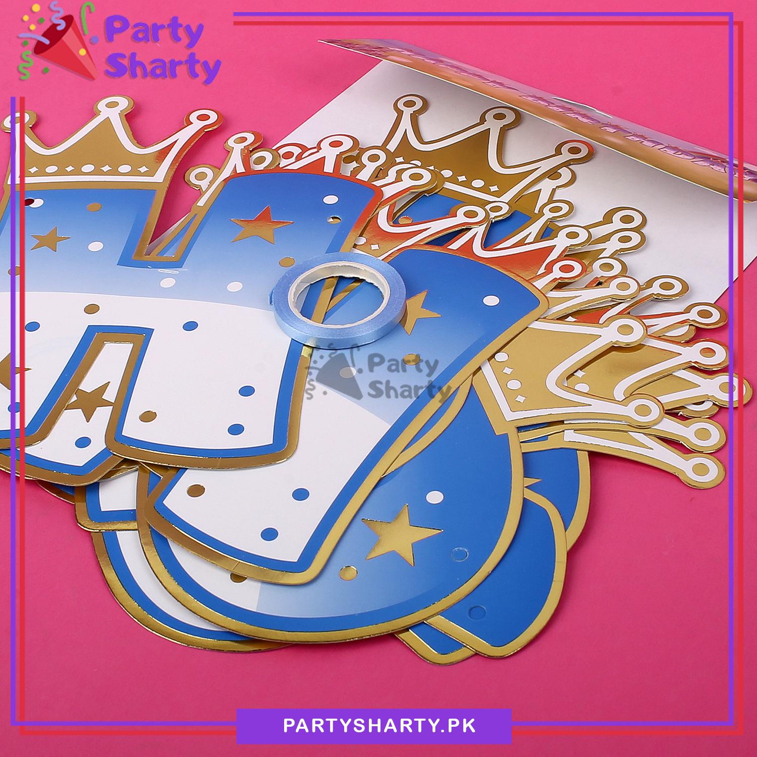 Royal Prince / Princess Crown Theme Happy Birthday Card Banner For Birthday Decoration and Celebration