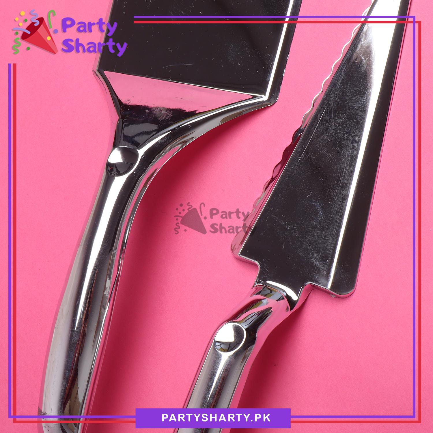 Silver Classic Heavy Duty Plastic Cake Server Set (Square and Triangle) For Birthday, Anniversary, Wedding Party Decoration and Celebration