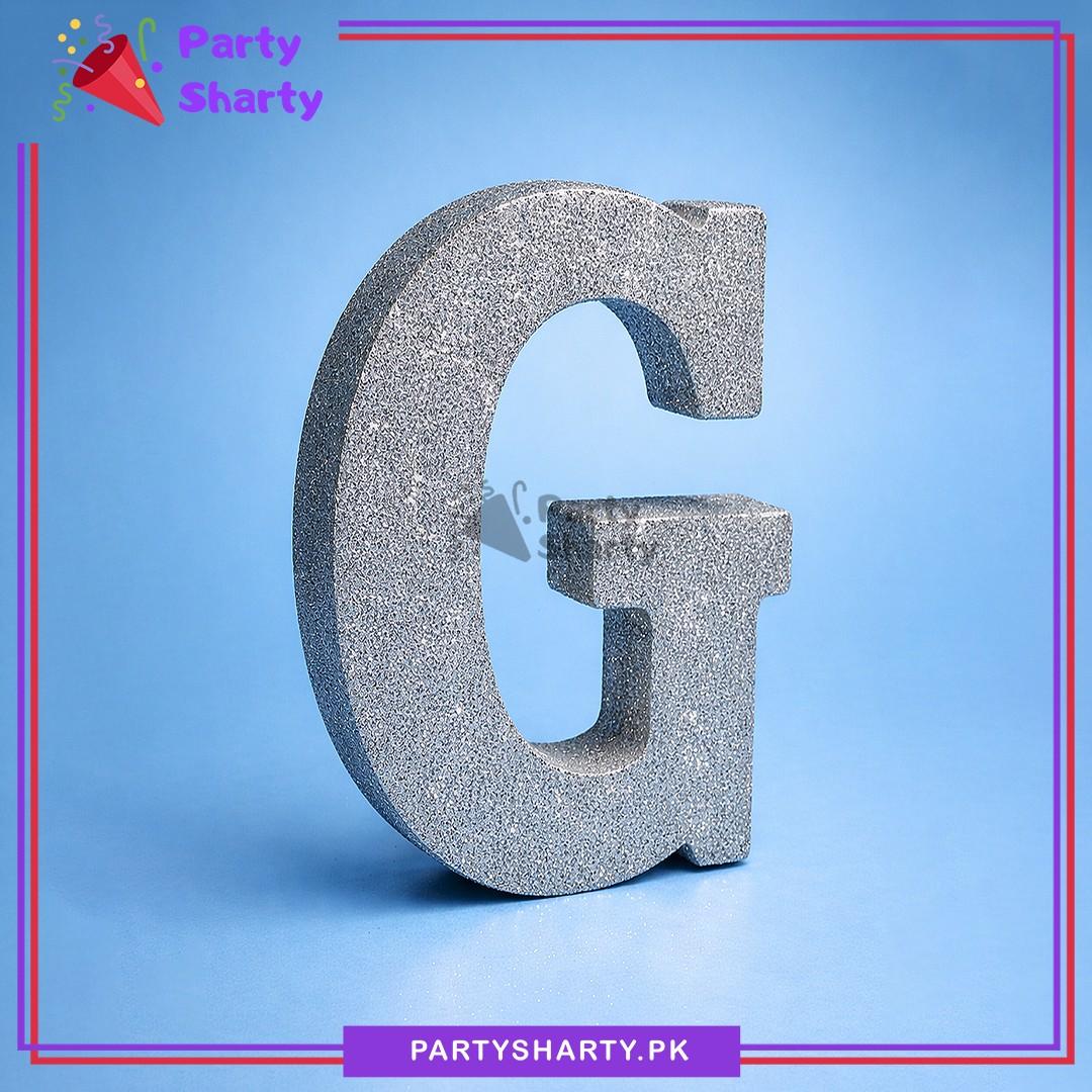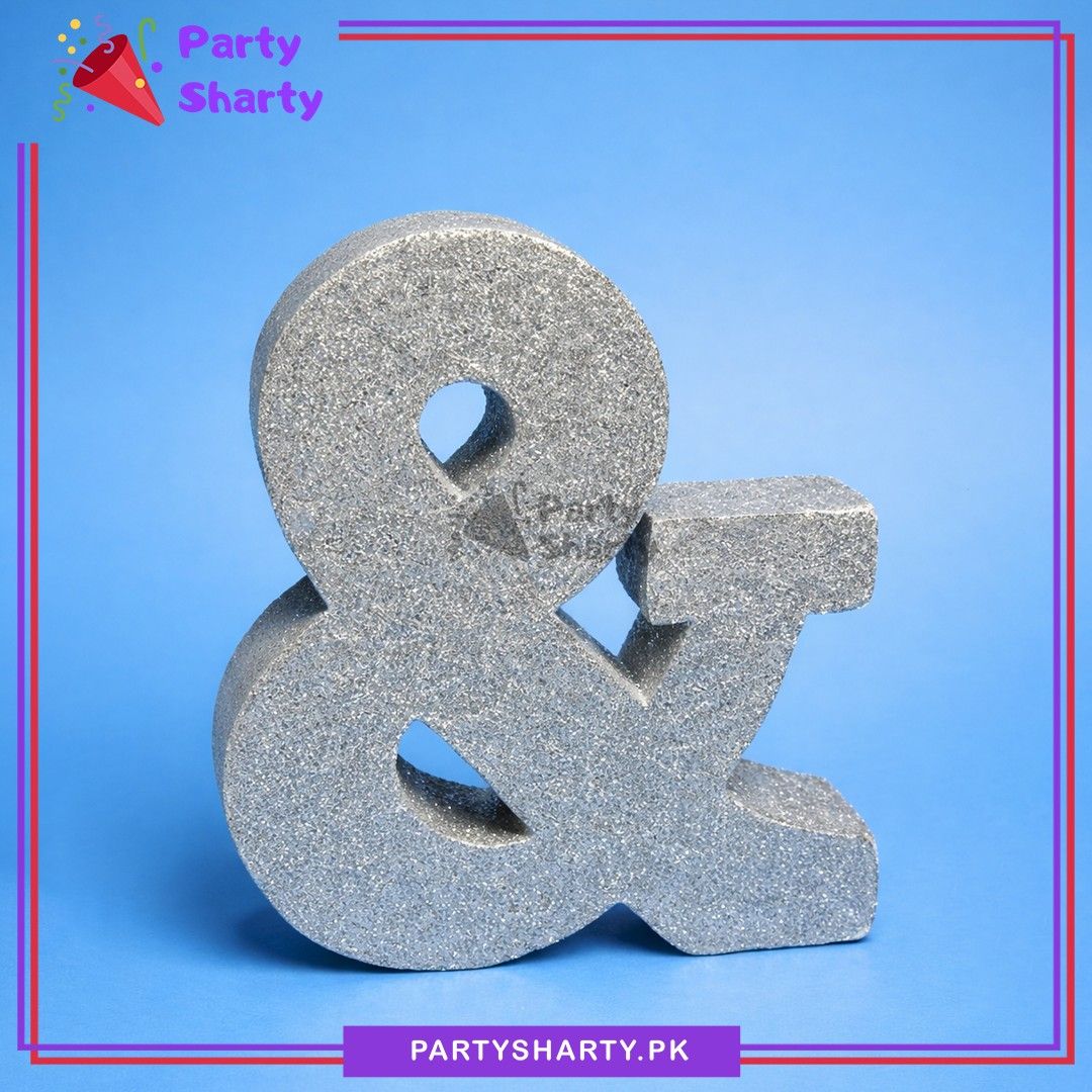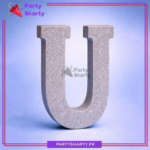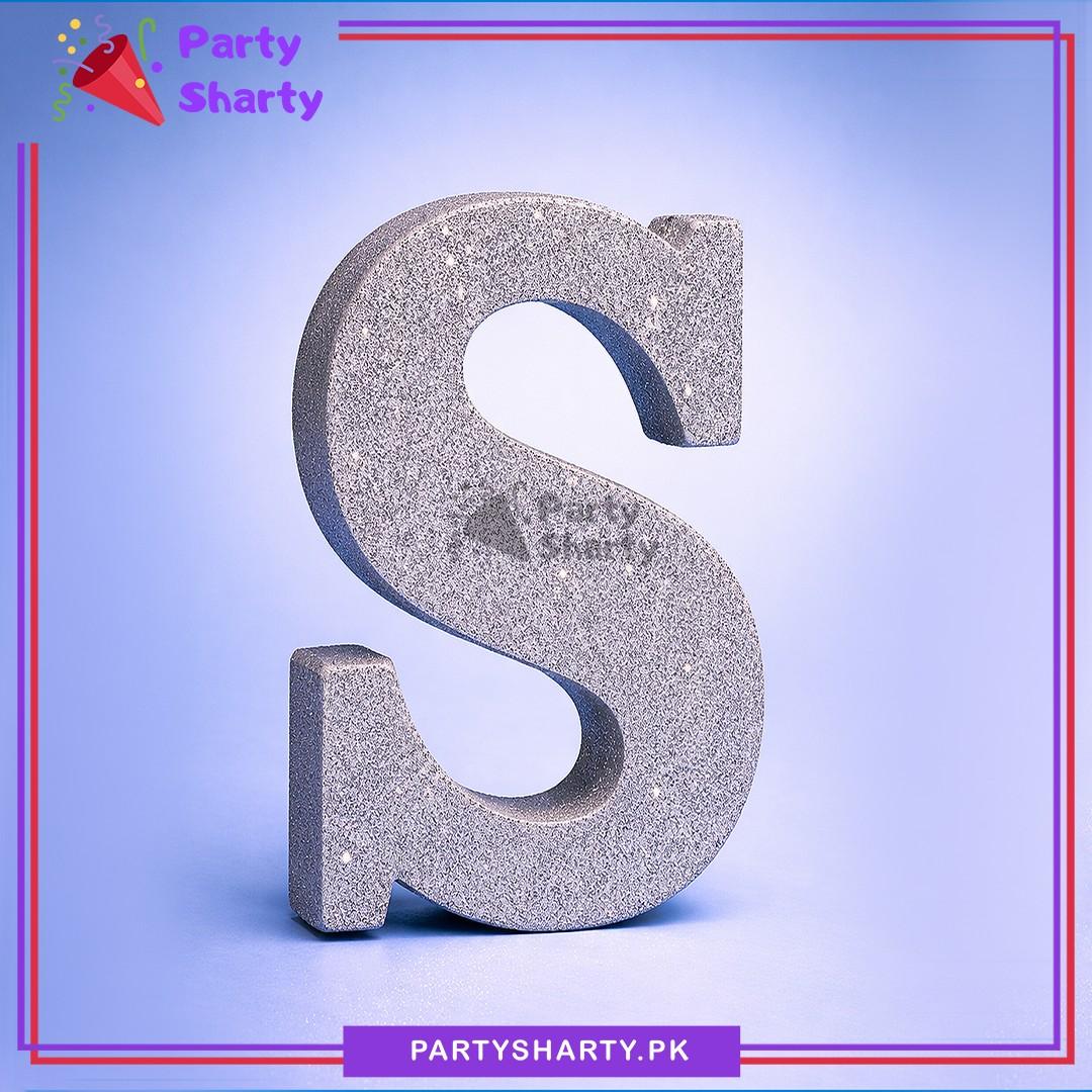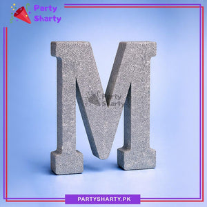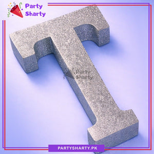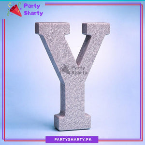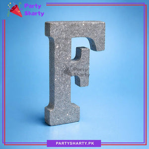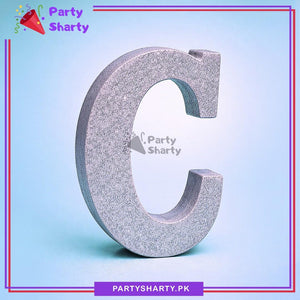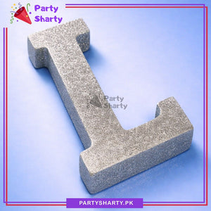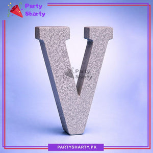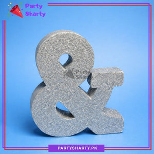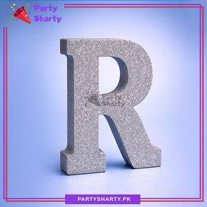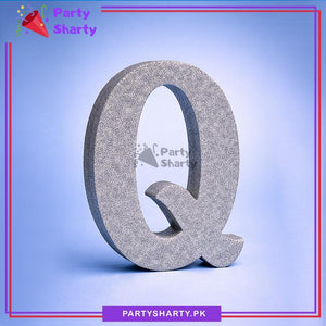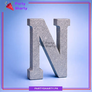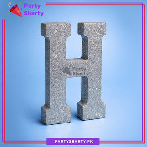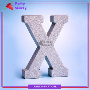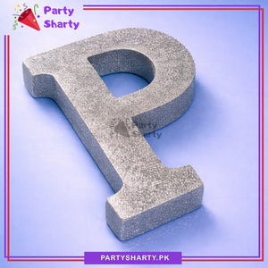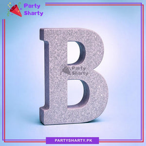 Silver Glitter Alphabet Sign Thermocol Standee For Birthday & Event Decoration