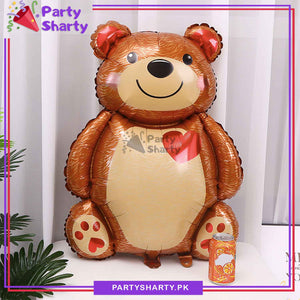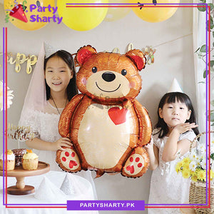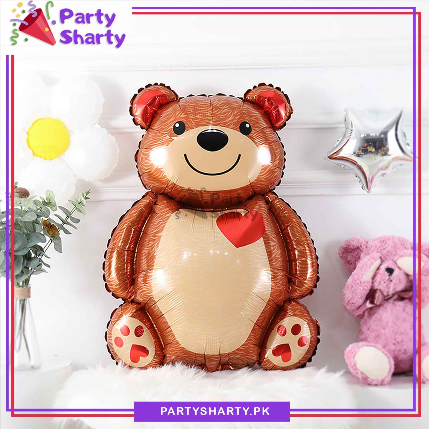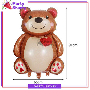 Sitting Teddy Bear with Red Heart Printed Foil Balloon For Teddy Bear Theme Party Decoration And Celebration