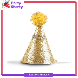 Small Golden Birthday Party Cone Cap For Half / First Birthday Celebration and Decoration