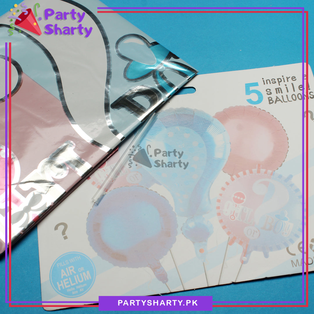 Stylish Boy or Girl Gender Reveal Foil Balloon set of 5 For Baby Shower and Gender Reveal Decoration and Celebrations