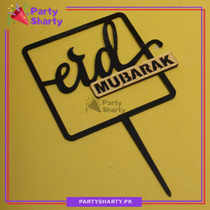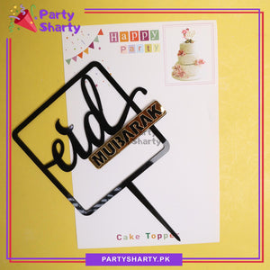 Stylish Double Layer Black & Golden Eid Mubarak Cake topper for Eid Decoration and Celebration