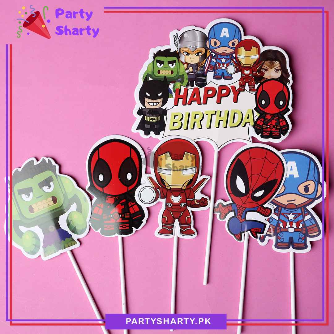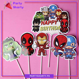 Super Hero / Avenger Theme Cake Topper Set of 6 for Super Hero Theme Birthday Decoration and Celebration