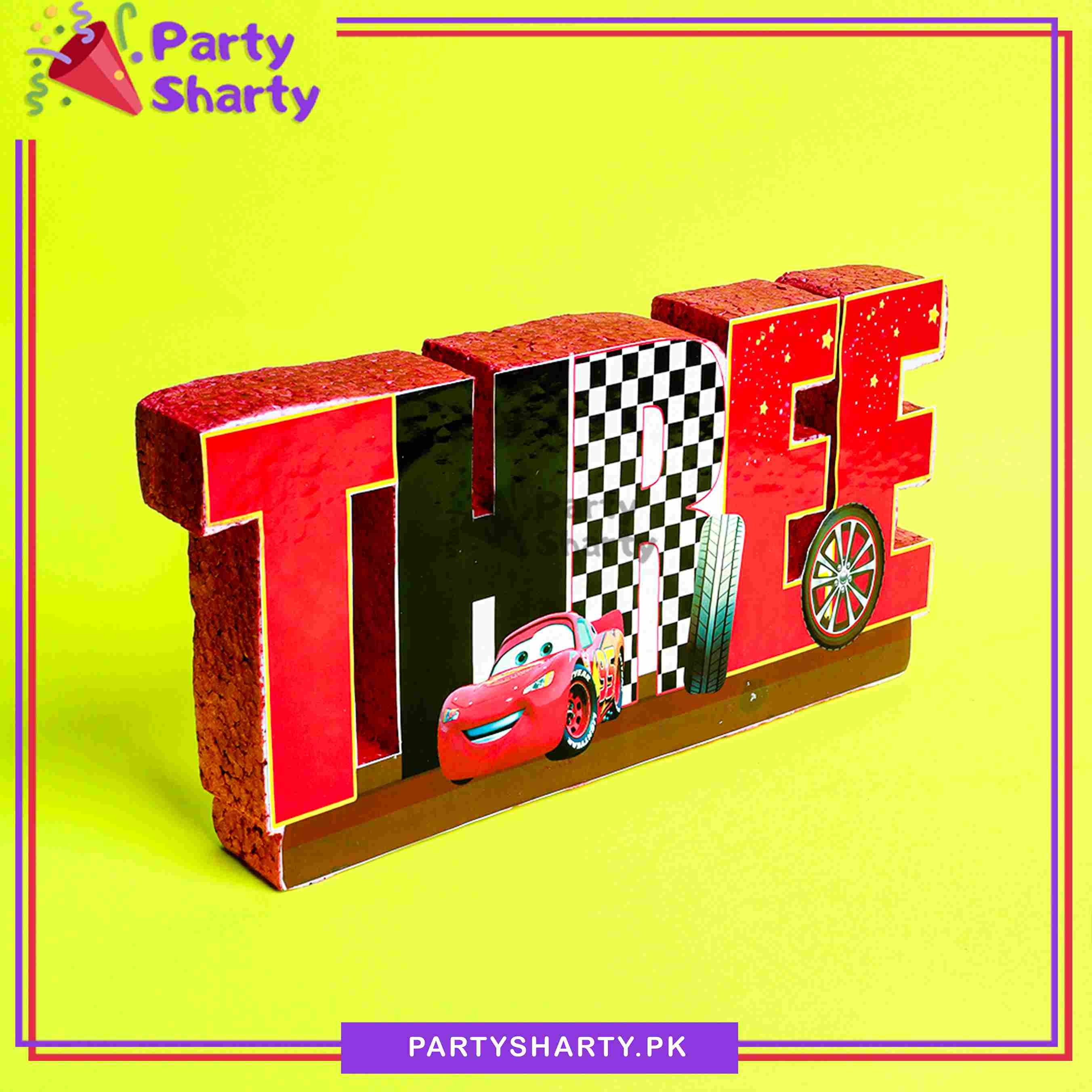 THREE Thermocol Standee For Lightning McQueen Cars Theme Based Third Birthday Decoration