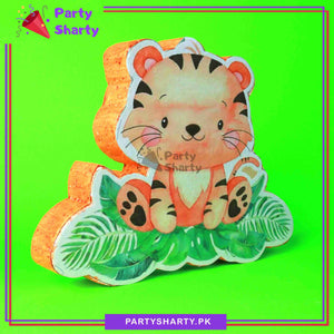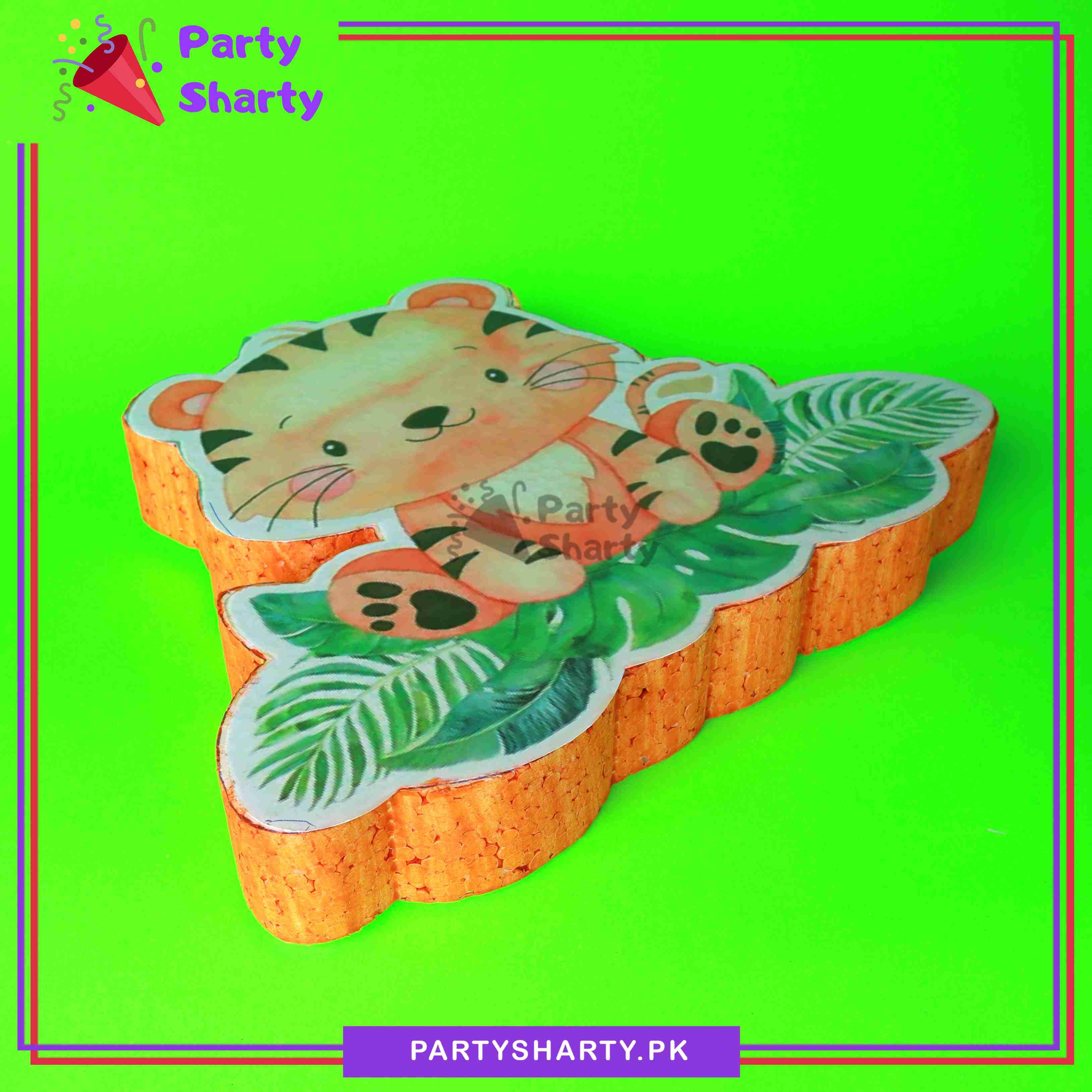Tiger with Leaves Thermocol Standee For Jungle / Safari Theme Based Birthday Celebration and Party Decoration