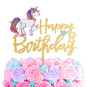 - Unicorn Cake Topper/Unicorn theme/Birthday theme/Party Supplies/Acrylic Happy Birthday The Unicorn Cake Topper for Boys Girls Adults Birthday Party Supplies