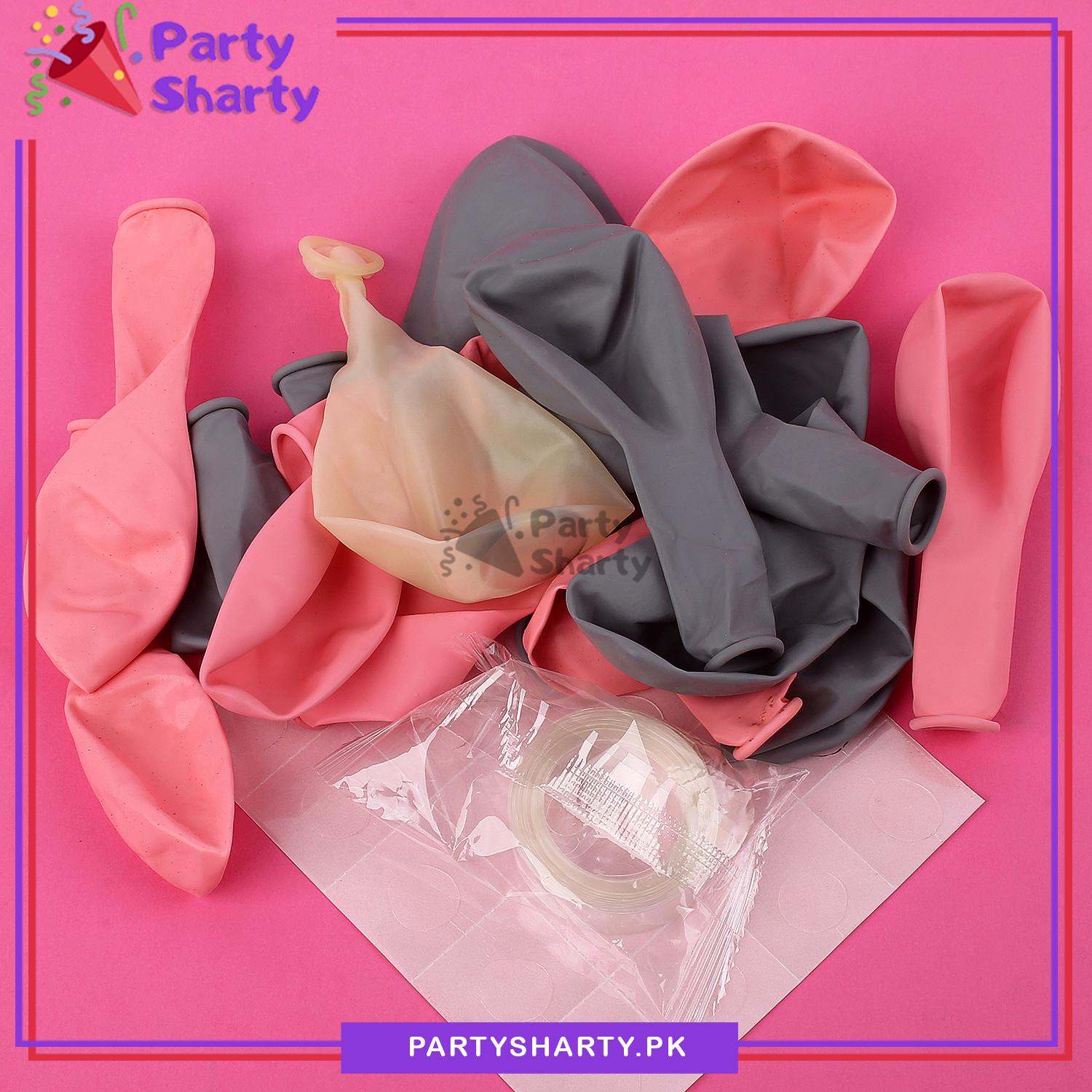 - Package Include: Happy Birthday Banner (Size Approx. 28 inches x 26 inches) + 1 pc Artificial Leave + Arch tape + Glue Dots Sheet + Approx. 36 Latex Balloons (30 Baby Pink and 6 Grey) + Paper Tassels - Pink + 5 Confetti Filled Latex Balloons - Rose Gold