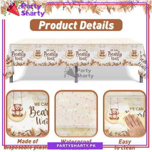 We can Bearly Wait Teddy Bear Theme Table Cover For Teddy Bear Theme Birthday Decoration & Celebration