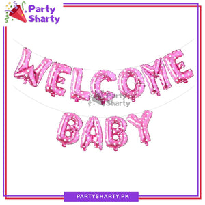 Welcome Baby Letter Foil Balloon With Printed Mini Hearts Banner for Baby Shower, Gender Reveal Event & Decoration