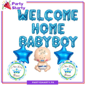 Welcome Home Baby Boy / Girl Foil Banner With Baby Shaped, Star / Heart & Round Foil Balloons set for Welcome Baby Decoration & Celebration