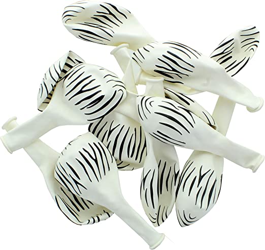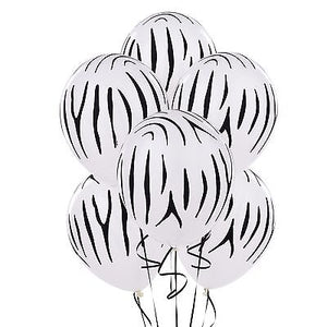 White Zebra Print Latex Balloons For Jungle / Safari / Wild One Theme Birthday Party Decoration and Celebration