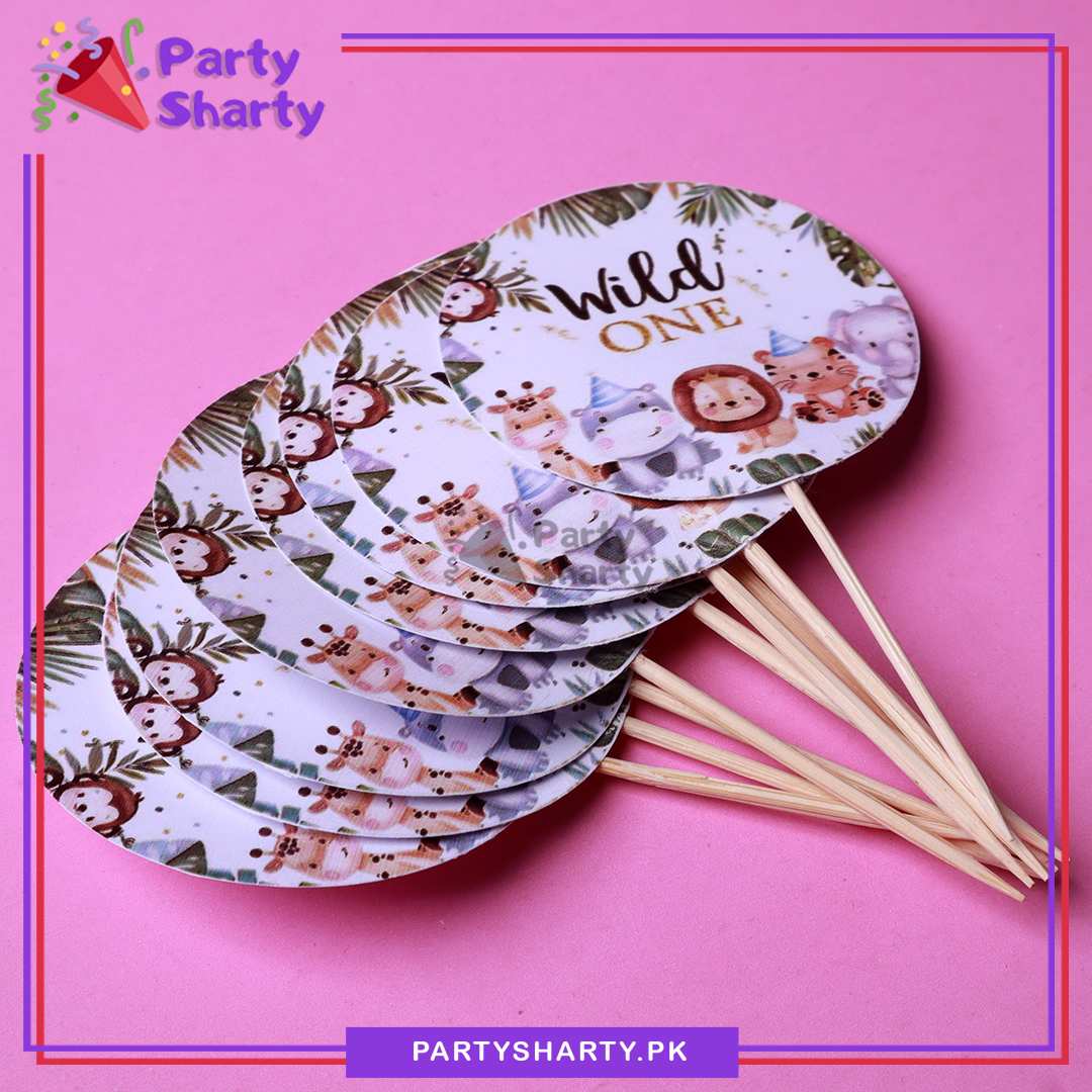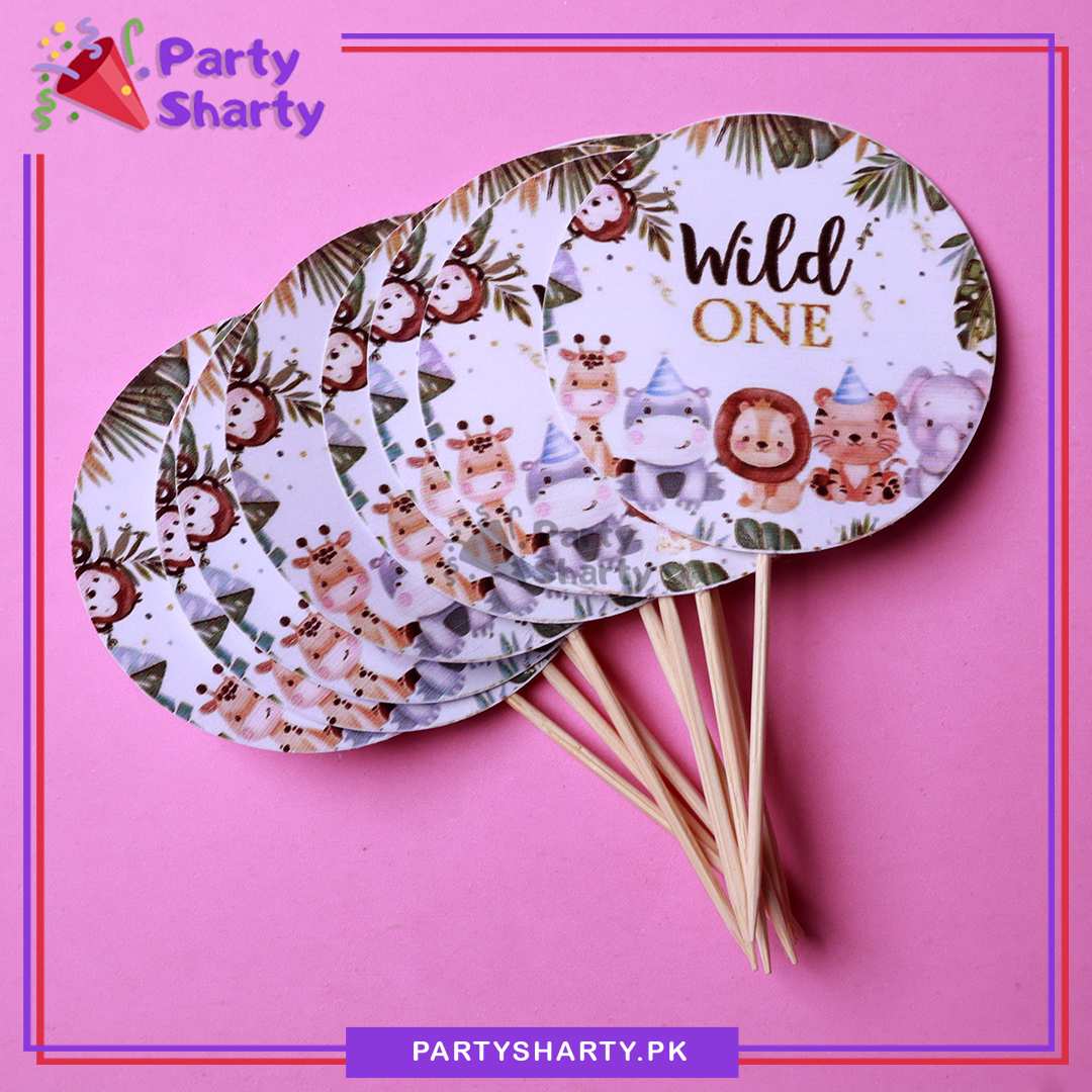 Wild One Cup Cake Topper For Jungle / Safari Birthday Theme Party and Decoration
